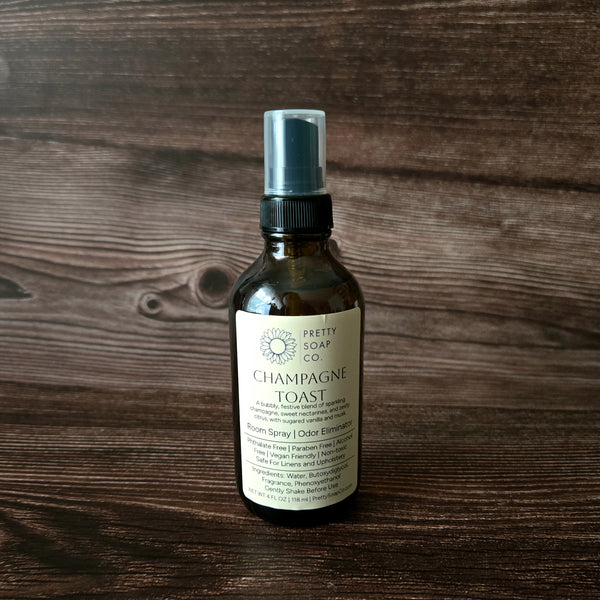 Celebrate every moment with our Champagne Toast Room Spray—a bubbly, festive fragrance that brings the party to any room. Sparkling champagne mingles with sweet nectarines and zesty citrus, all grounded in a decadent sugared vanilla and musk base. Perfect for elevating your home, car, linens, and anywhere else that deserves a touch of festive glamour while banishing odors.